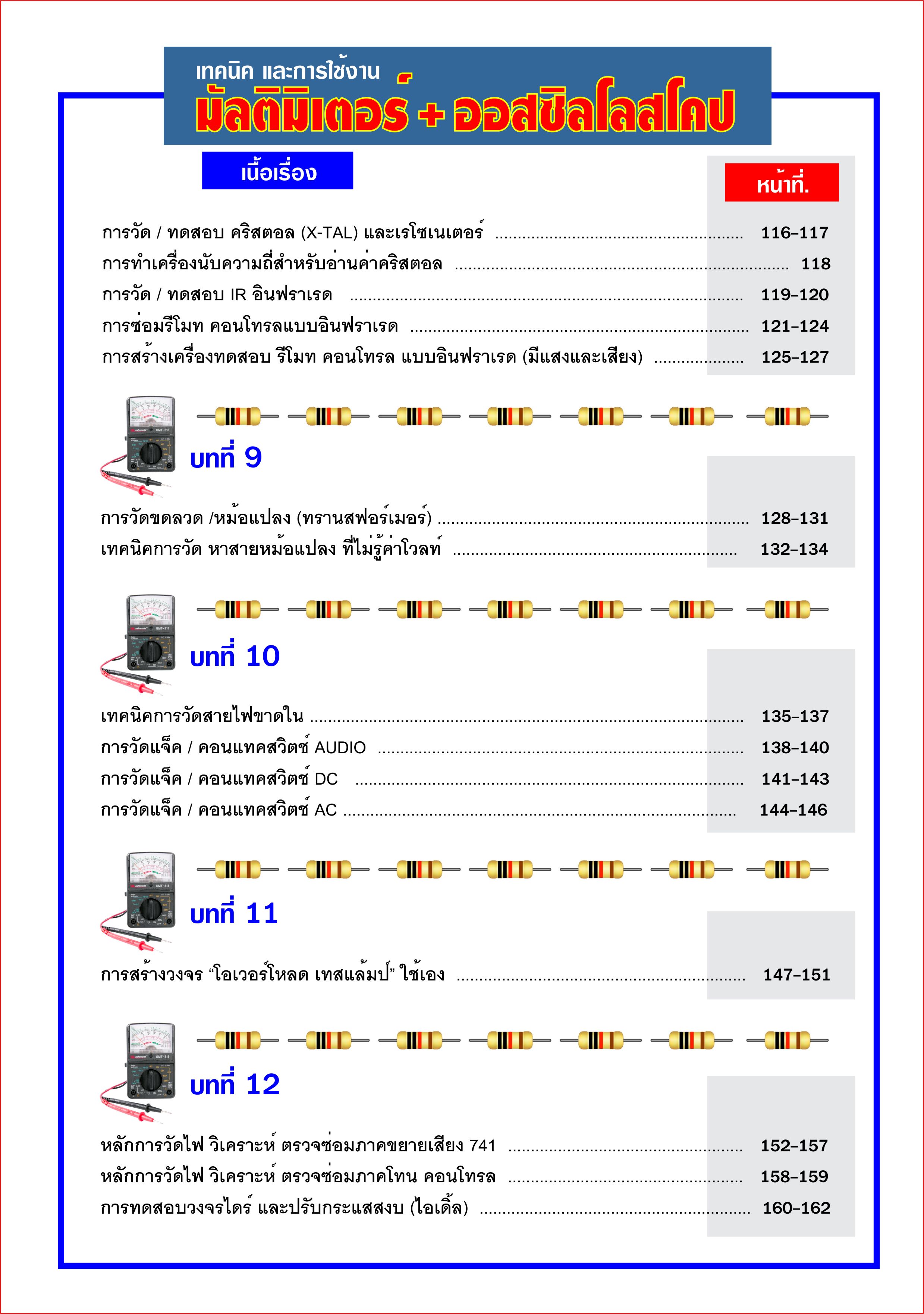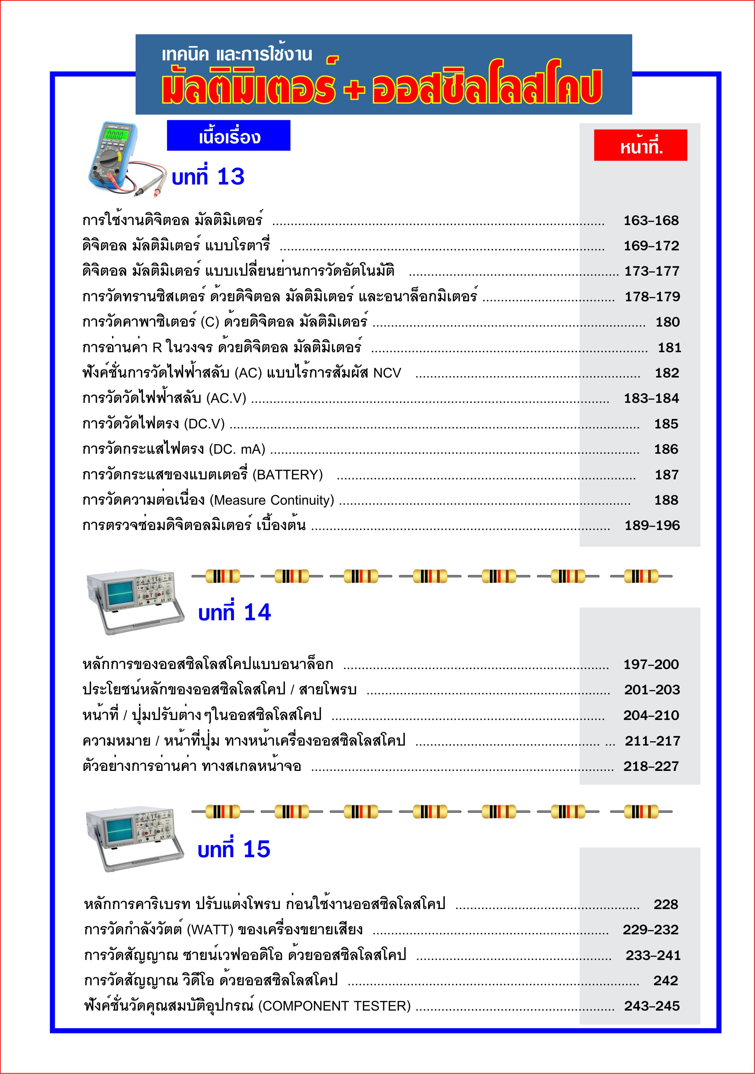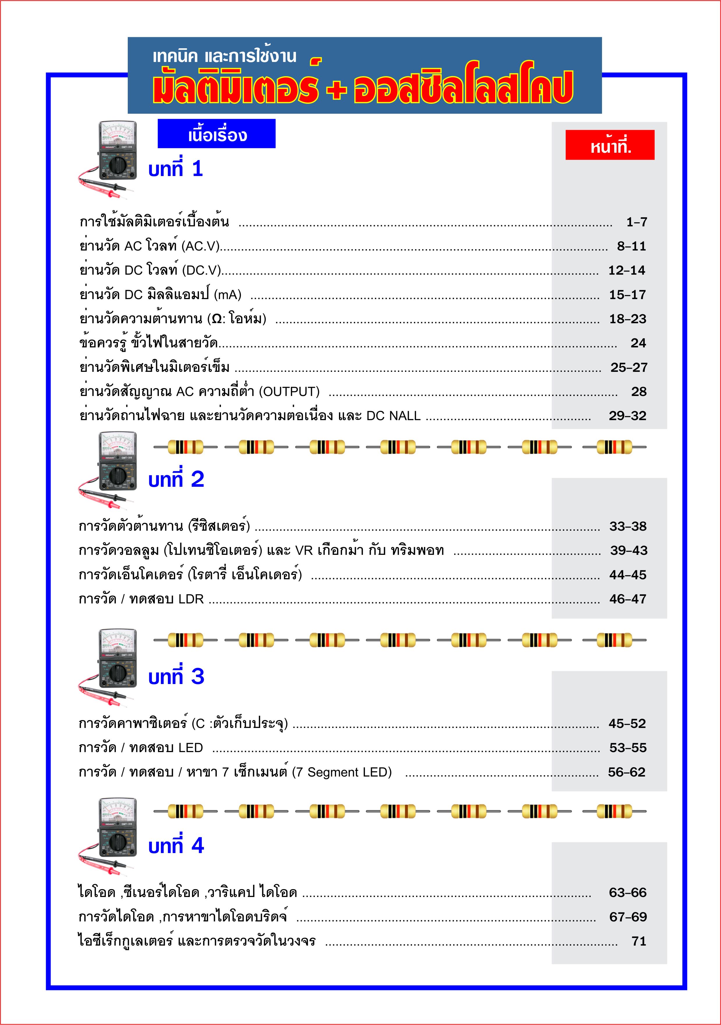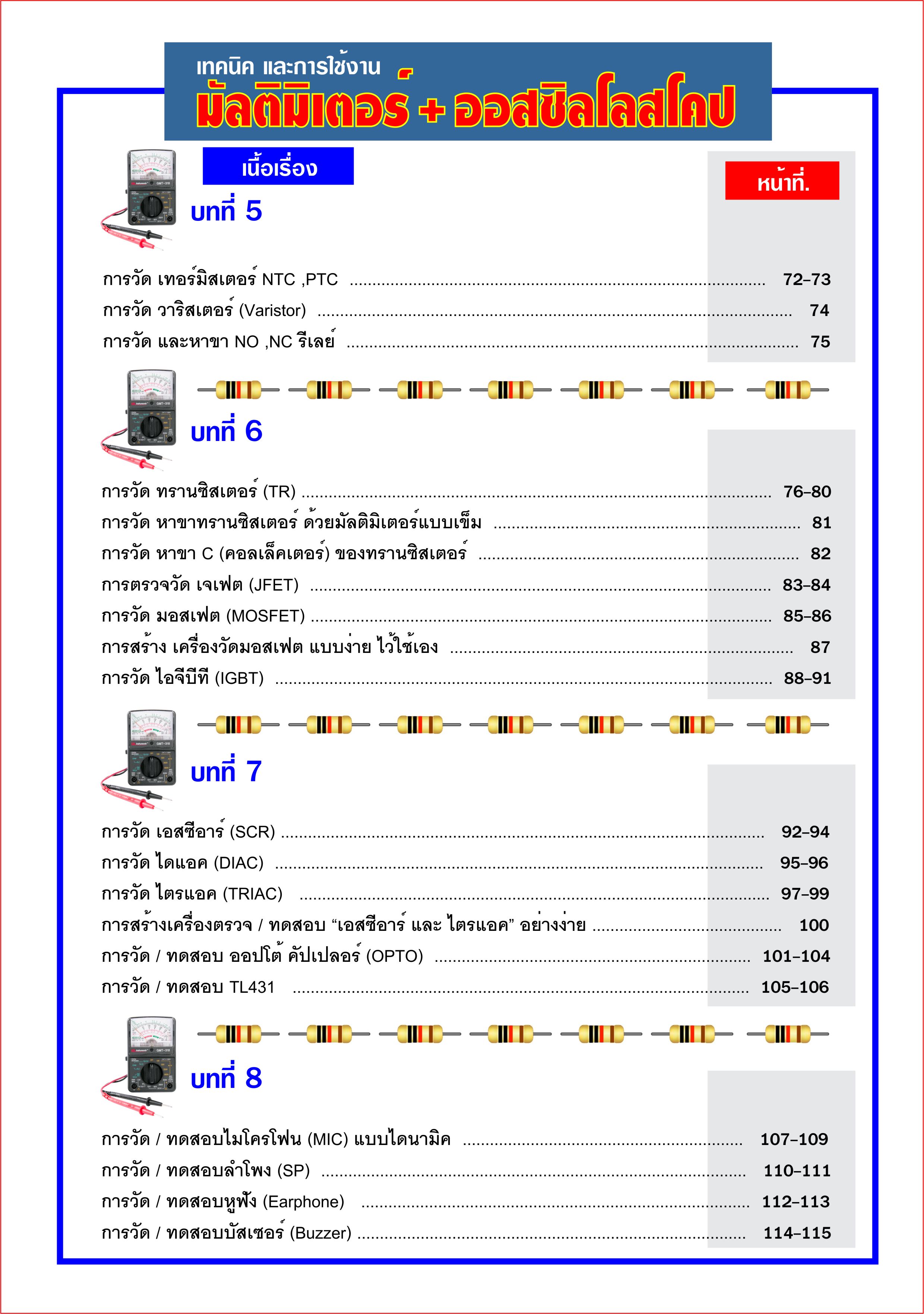 นี่คือหนังสืออิเล็กทรอนิกส์เล่มที่ 4 ในอนุกรม "สู่โลกอิเล็กทรอนิกส์" ที่จะทำให้คุณใช้เครื่องมือมัลติมิเตอร์แบบต่างๆวัดอุปกรณ์อิเล็กทรอนิกส์ต่างๆได้ และใช้ "ออสซิลโลสโคป" วัดรูปคลื่นสัญญาณต่างๆทางอิเล็กทรอนิกส์ได้ ก้าวเข้าสู่ความเป็นมืออาชีพยิ่งขึ้นในการวิเคราะห์และตรวจซ่อมวงจรอิเล็กทรอนิกส์